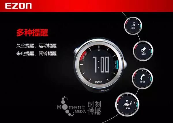 2)多种提醒:久坐提醒、运动提醒、来电提醒、闹铃提醒、生日提醒、整点报时;